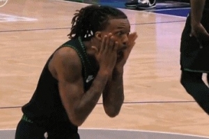 GIF-海兰德退防撞上芬尼-史密斯,裁判吹海兰德犯规