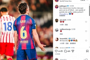 加维社媒晒出比赛照片,并写道:“昨天我们本应得到更好的结果,但这就是足球。还有次回合比赛,让我们团结一心!”